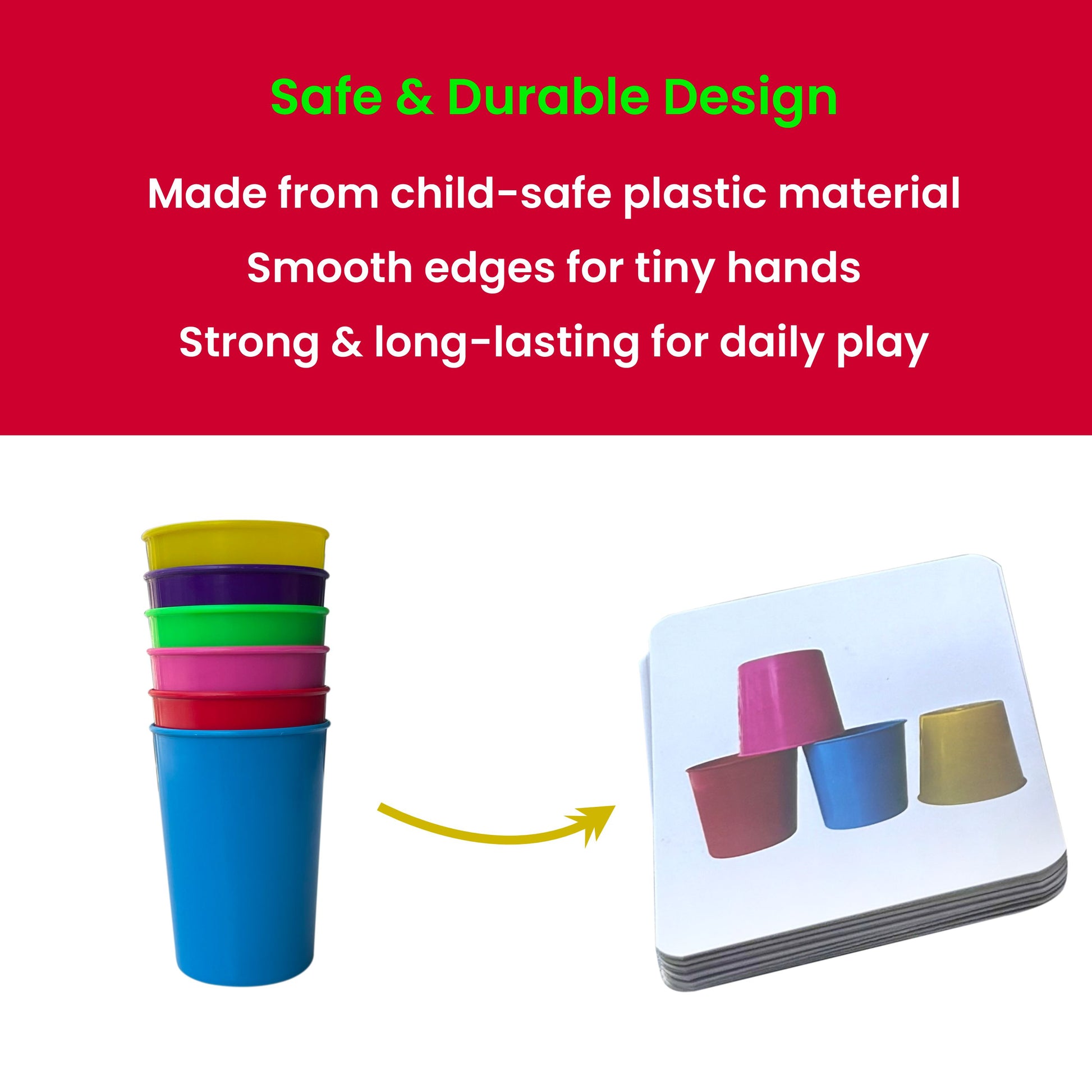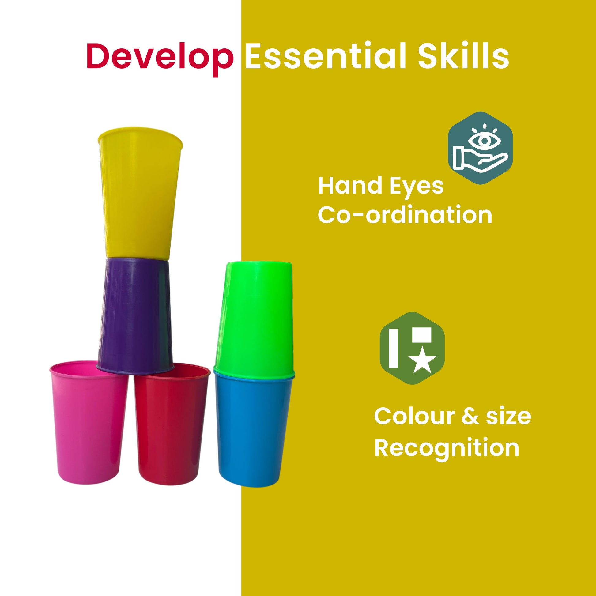 - Speed stacking cups teach the foundation every child needs while the storage box for kids allows children to put their toys away themselves learning the importance of cleaning up.